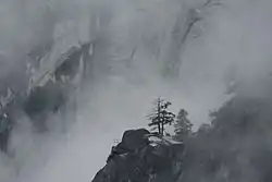 Following the rock slide, a portion of the trail approximately mid-way to Sierra Point is missing, although it is still possible to reach the point by scrambling over loose ground.[2] Although the trail is only 0.7 miles (1.1 km) long and about 1,000 feet (300 m) off the valley floor,[3] this hike should not be attempted by beginning hikers due to the difficulty of the missing portions of the trail. In fact, the National Park Service does not recommend that anyone take this trail. Despite this warning, many people still reach the point each year as it is easily accessible from the Vernal Fall trail in Happy Isles, and still has the original railing at the top.