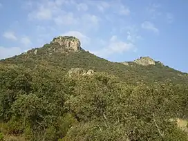 ![]() Southern slope of El Picazo composed by the summit of El Picazo 1268 m (left) and Peña Alonso 1295 m (right in the background), one of the main altitudes of the mountain chain. | |