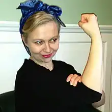 Sigríður Ingibjörg Ingadóttir posing as Rosie the Riveter (2014)