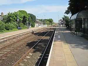 The railway station is a request stop, and one of the many level crossings on this section of the route is controlled from the signal box at its south end.[1]