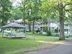 Silver Lake Institute Historic District is a national historic district located at Silver Lake in Wyoming County, New York. The district consists of 13 acres (5.3 ha) and is historically significant because of its association with the Silver Lake Institute, a Methodist-affiliated camp facility established in 1873. The properties reflect the evolution of the institute from a Methodist Revivalist summer camp in the 1870s and 1880s to a cultural, educational, and religious summer institute in the Chautauqua tradition during the 1880s and 1890s, and finally to a secular summer cottage community in the early 20th century. The focal point of the community is the 2.03-acre (0.82 ha) Burt Park and the district includes 72 additional properties including 70 cottages.[2]