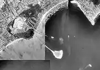 Aerial photo of Silver Sands State Park, including Charles Island