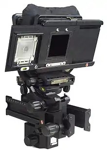 A new concept camera that renews the characteristics of the SLV, using most of its accessories, has the shiftable viewfinder embodied which coupled with the shift movement gives operative easiness and simplicity of use. The lens-format frames are interchangeable, starting from the Schneider series the including the Rodenstock one too. The camera is now out of production.