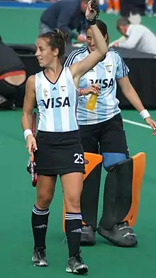 María Silvina D'Elía (born 25 April 1986) is an Argentine field hockey player. At the 2012 Summer Olympics, she competed for the Argentina national field hockey team.[1] Silvina won the 2010 World Cup, five Champions Trophy, the silver medal at the 2012 Summer Olympics in London and two Pan American Cups.