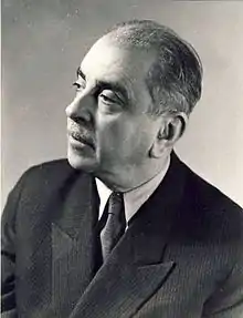Stoilow was elected corresponding member of the Romanian Academy in 1936, and full member in 1945, and later became president of the Physics and Mathematics section of the Academy.[1] In 1949 he was the founding director of the Institute of Mathematics of the Romanian Academy, serving in that capacity until he died. Among his students at the University of Bucharest and at the Institute were Cabiria Andreian Cazacu, Romulus Cristescu, Martin Jurchescu, Ionel Bucur, and Aristide Deleanu,[2] as well as Nicolae Boboc, Corneliu Constantinescu, and Aurel Cornea. Some of the first Romanian topologists who obtained their candidate’s theses were Stoilow’s students Tudor Ganea, Israel Berstein, Aristide Deleanu, Valentin Poénaru, and Kostake Teleman.[5]