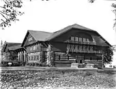 In 1905 Benson donated the Forestry Building at the Lewis and Clark Centennial Exposition in Portland.[7] The building was the largest wooden building at the time and it burnt down in 1964.[8] The interior was copied in the Glacier Park Lodge.