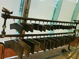 A bianqing, an old Chinese instrument, placed in the building as a monument.