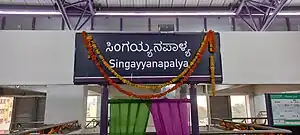 Singayyanapalya (formerly known as Mahadevapura) is an elevated metro station on the East-West corridor of the Purple Line of Namma Metro in Bengaluru, India. Around this station, holds the Hindustan Petroleum Corporation Ltd. followed by some locations like Phoenix Marketcity, VR Bengaluru, Exxonmobil Lubricants Pvt. Ltd., DTDC office and many more.[1][2][3]