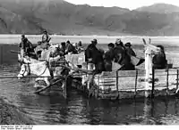 Ferry boat on the Yarlung Tsangpo River with carved horse's head on the prow (right), photo from 1938.