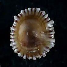Apertural view of a shell of Siphonaria diemenensis Quoy & Gaimard, 1833