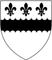 ![]() Arms of Eyles: Argent, a fess engrailed sable in chief three fleurs-de-lys of the last[1] | |