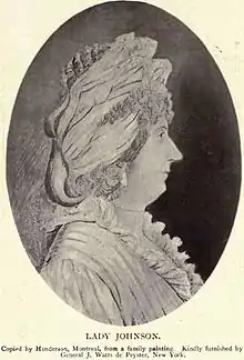 Lady Johnson died in Montreal on August 7, 1815.[2] Sir John died, at the age of 88, in Montreal, while still Superintendent of Indian Affairs, on January 4, 1830. Both are buried in a vault at Mount Johnson, near Chambly, Quebec.[16]
