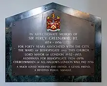 Sir Percy Walter Greenaway, 1st Baronet (11 June 1874 – 25 November 1956) was Lord Mayor of London for 1932 to 1933.[1][2]