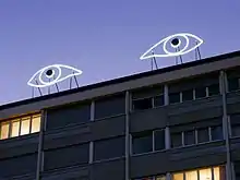 - "Axis of Silence" one of the 13 luminous installations of the Neon Parallax public art project on the Plaine of Plainpalais, Geneva.