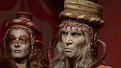 ![]() Maren (Cynthia Grenville; right) and Ohica (Gilly Brown; left, background), two senior members of the Sisterhood | |
