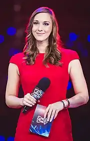 It was due to esports journalist Travis Gafford's YouTube show Whose League is it Anyway? that Depoortere became known in the community.[14] Due to her popularity on WLIA she was later hired to be the host of the European League of Legends Championship Series.[2][15][16] She has often thanked Gafford for helping her establish herself in esports.[2][15] Depoortere is also known for the YouTube show Summoner Recap on the SK Gaming's YouTube channel, which was one of the first League of Legends shows.[17] In 2013, Depoortere hosted the World Championship in Staples Center in Los Angeles, California. She has also hosted the 2015 and 2019 World Championship, both held in Europe, and the 2020 World Championship held in China, but cast remotely in Berlin due to the COVID-19 Pandemic.[18][19] Depoortere won the "Best Esports Host" award at The Game Awards 2018,[20] The Game Awards 2019,[21] and The Game Awards 2020.[22]