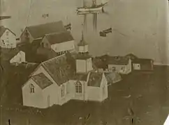 The earliest existing historical records of the church date back to the year 1589, but the church was not new that year. Historically, the old church was located about 30 metres (98 ft) south of the present site of the church. In 1666, the building was described as being fairly new, so the old church must have been replaced around that time. The church was described as a small church with small windows and a dark-colored exterior.[3]