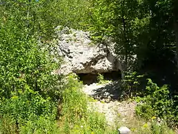 Skull Cave is a small and shallow cave on the central heights of Mackinac Island in Michigan, United States. The cave was carved during the Algonquin post-glacial period by the waters of Lake Algonquin, a swollen meltwater ancestor of today's Lake Huron.[3]