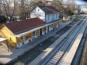 The Skydra railway station (Greek: Σιδηροδρομικός σταθμός Σκύδρας, romanized: Sidirodromikós stathmós Skydra) is the railway station of Skydra in Central Macedonia, Greece. The station is located near the center of the settlement, on the Thessaloniki–Bitola railway, and is severed by both Local and Proastiakos Services.