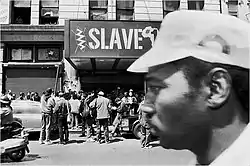 In 1984, Brooklyn civil court judge John Phillips[1] bought and renamed the Regent Theater (built in 1910[2]). He had produced an interracial romance film Hands Across Two Continents and couldn't convince theaters to screen it, so he bought two theaters in Brooklyn to have the movie played.[3] He renamed the Regent Theater the Slave Theater because, according to the website Brownstoner, he wanted to "remind everyone in the community, including himself, where they came from. He didn’t particularly care that many in that community were offended by the name, either".[1] In response to in Queens later in the 1980s (see e.g. Howard Beach incident), Judge Phillips opened the theater as a space for the local Black community and civil rights work; Al Sharpton started holding weekly rallies at the theater,[4] which he cites as a reason for increased civil rights organizing in Brooklyn at the time.[5] For example, the Slave Theater was a gathering point for marches (and speeches by Al Sharpton and C. Vernon Mason) following the acquittal of John Vento and Keith Mondello for the murder of Yusef Hawkins in August of 1989.[6][7]