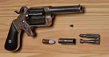 Slocum revolver, loading cartridge .38 short. Detail: Chamber locked