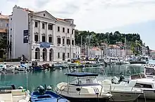 Slovenia, which has 46.6 kilometres (29.0 mi) of the coast along the Adriatic Sea in the Gulf of Trieste, operates the Port of Koper with over 20 million tons of annual goods handling,[11] the Faculty of Maritime Studies and Transport in Portorož, the Sergej Mašera Maritime Museum in Piran, and the Piran Marine Biological Station.[12] Historically, in the maritime sector, the Slovenes were mostly involved with the Austro-Hungarian and Yugoslav Navy,[13] [14] and the Sečovlje saltpans[15] as well as tourism in Portorož and fishing industry in Izola.[16]