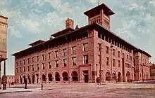 Many small-town opera houses constructed during the 18th and early 19th centuries consisted of a stage with adjoining dressing rooms located on an upper floor of a multi-story building, with lower levels occupied by retail space or the meeting rooms of fraternal associations.[6][7] In the Great Plains, opera houses generally had a seating capacity ranging from 200 to 1600.[8]