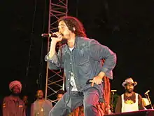 Marley had previously asked the original Wailers Peter Tosh and Bunny Wailer to participate but they refused for political reasons.[3] All musicians present huddled to decide what songs and parts to play.[17] All current Wailers performed, although Cat Coore of Third World stood in for bassist Aston "Family Man" Barrett, who had gone into hiding after the shooting and arrived late.[18] The I Threes sang backup, Rita Marley still wearing the hospital gown she had been discharged with hours earlier.[19] Others included the horn section from Zap Pow and five hand drummers from the Sons of Negus.[20] There were "over two hundred" people on stage, many providing a human shield for Marley.[11][12] Prime Minister Manley came on stage before watching the performance from the roof of a van.[17]