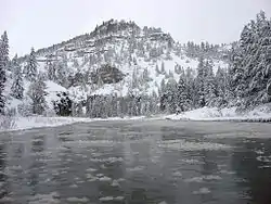 The Smith River is a 110-mile (180 km) long river[1] which begins about 2.5 miles (4.0 km) southwest of White Sulphur Springs, Montana, and continues on a north-westerly and northerly course, passing between the Big Belt Mountains and Little Belt Mountains, before reaching a confluence with the Missouri River at Ulm, Montana. The river is generally divided into three sections. The first begins at the river's headwaters and runs for 25 miles (40 km) through a high valley between the two mountain ranges.[2] The second, about 58.8 miles (94.6 km) long, runs through the Smith River Canyon Valley and features spectacular mountain scenery.[3] The third, about 30 miles (48 km) long, begins at the canyon mouth and ends at the river's confluence with the Missouri. This final segment passes briefly through the foothills of the mountains and then onto the Great Plains, the water's speed slowing significantly as it does so.[4] For nearly all of its length, the river is too shallow for motorized boating.[2] Water flows are highest from mid-April through early July, with levels usually dropping too low by late July to permit boating.[3]