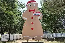 On December 2, 2006, at the city's 16th Annual Festival of Lights, Smithville broke the Guinness World Record for the world's largest gingerbread man.[13] The record breaking "man" measured over 20 feet (6.1 m) long and weighed 1,308.5 lb (593.5 kilograms). Some of the ingredients used were 750 pounds of flour, 49 gallons of molasses and 72 dozen eggs. The pan used in the baking now stands as a monument at the James H. Long Railroad Park in Smithville. The record has since been broken by a Norwegian IKEA display.[14]