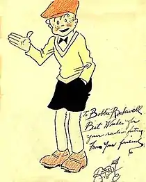 The strip featured young office boy Augustus Smith aka Smitty, his six-year-old brother Herby, his girlfriend Ginny and his dog Scraps. Other characters were Smitty's boss, Mr. Bailey, and the Indian guide, Little Moose. Berndt based the strip on his own experience as an office boy, recalling, "I learned the tricks, shenangians and schemes of an office boy and became expert at them."[2] Berndt saw his creation as featuring "flashbacks of things you did as a young fellow."[2] As the strip progressed, the teenage Smitty aged to young adulthood (approximately 13 to 23) and eventually got married.