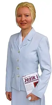Snježana Kordić (pronounced [sɲěʒana kôːrditɕ] ; born 29 October 1964)[1] is a Croatian linguist.[3] In addition to her work in syntax, she has written on sociolinguistics.[2] Kordić is known among non-specialists for numerous articles against the puristic and prescriptive language policy in Croatia.[4] Her 2010 book on language and nationalism popularises the theory of pluricentric languages in the Balkans.[5]