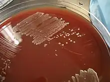 The species is microaerophilic, i.e. grows best at low oxygen levels. A five percent CO2 atmosphere at a temperature of 37 °C provides optimal growth conditions, while the bacteria show very weak or no growth in air or without oxygen (anaerobic). In the TSA, the growth range is approximately pH 6.0 to 6.5.[2] The catalase test and the test for nitrate reductases are positive, while the oxidase test (detection of the enzyme cytochrome c oxidase) is negative. Tests of the strains for β-glucosidase, β-galactosidase, indole production, proteolysis of gelatin, and glucose fermentation are negative. They are not hemolytic and show variable reactions to urease and arginine dihydrolase.[2]