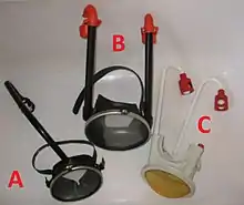 Among recent innovations is the "collapsible snorkel", which can be folded up in a pocket for emergencies for scuba divers who may not need a snorkel on every dive.[66] One for competitive swimmers is a lightweight training snorkel with twin inlet tubes, which exhausts through a valve underwater, similar to the exhaust valve of a diving demand valve, so the dead space is restricted to the mouthpiece volume;[67] another is a "restrictor cap" placed inside a snorkel barrel "restricting breathing by 40% to increase cardiovascular strength and build lung capacity".[68] Some additional snorkel features such as shut-off and drain valves fell out of favour decades ago, only to return in the contemporary era as more reliable devices for incorporation into "dry" and "semi-dry" snorkels.[14]
