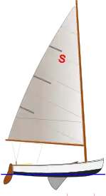 Reid's 1921 design was intended to be an inexpensive wooden boat, constructed by amateur builders. Plans for the boat were published in 1923 in The Rudder magazine. The boat originally had a bird for a sail badge, but this was soon changed to a red letter "S".[1][2][5]
