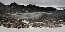 In 2006, the American Alpine club secured a permit to build a wilderness hut on the northeastern edge of the glacier, on a high moraine above the glacier terminus. This hut was effectively a replacement of a previous structure, a decrepit "space dome" installed around 1985 which was approaching the end of its usable life, and which has now been removed.[1]