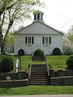 In 1870, the first formal church organization and structure was established in Snowville under the leadership of Asiel Snow. Known as Snowville Christian Church, the building had a large balcony for African Americans.[13] The large bell was donated by Miss Mary Snow just prior to her death. It tolled, for the first time, to announce Miss Snow's death. When tolling was a practice, a death would be announced by the tapping of the bell three times by an attachment especially made for that purpose; this was then followed by individual strokes, one for each year of life, to indicate the age of the deceased. The Snowville bell was famous for its unusual toll, which could be heard 7 miles (11 km) east in the town of Auburn.