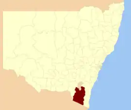 The council comprises an area of 15,162 square kilometres (5,854 sq mi) and occupies the higher slopes of the eastern side of the Great Dividing Range between the Australian Capital Territory to the north and the state boundary with Victoria to the south. At the time of its establishment the council had an estimated population of 20,707.[1] Its population at the 2016 census was 20,218.[3]