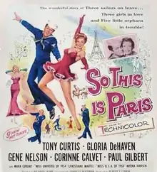 So This Is Paris is a 1954 American Technicolor romantic musical comedy film directed by Richard Quine. It stars Tony Curtis (in his only film musical) and Gloria DeHaven.[2]