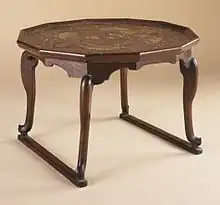 Soban (Korean: 소반; Hanja: 小盤) are small tray-like tables, usually wooden, used in Korea for carrying food and as individual dining tables. They are generally made of walnut, pine or ginko wood, often sourced from the carpenter's local area.[1][2] Carvings and murals showing images of soban have been found in tombs dating back to the time of the Goguryeo kingdom. As well as being used for dining, soban were also used for general carrying tasks, as writing desks and as small altars for prayers or for burning incense.[3]