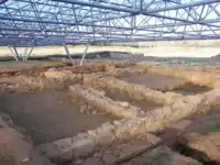 The camp is nestled on a plateau of 480 meters, is surrounded by the mountain of Serra da Corda, its height varies between 522 and 601 meters. The presence of the camp in this place is due to strategic reasons, such as controlling step the Roman road to "Lucus Augusti (Lugo). The camp is rectangular with rounded corners. Its dimensions are 172 meters long by 140 feet wide, equivalent to an area of 2.40 ha, which are appropriate measures for the training of a military unit five. This whole camp is protected by a wall and a moat and a number of control points located near the camp . The materials found at the camp are numerous coins ranging from the time of Domitian (86) to Claudius II (270), a wide range of glass, bronze, iron objects, construction of pottery, etc..