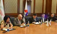 The European Union assisted Kyrgyzstan and Social Democratic party in organizing the parliamentary (2015) elections, which were found to be fair and competitive.[19] Atambayev, who became president of the country, negotiated this assistance during his visit to Brussels during negotiations with the President of the European Parliament Martin Schultz and the President of the European Council Herman Van Rompuy in 2013. Also at that time, Atambayev had an active dialogue with the President of the European Commission, Jose Manuel Barroso.[20] Alexander Soros positively reviewed digitalization efforts of Kyrgyz government in Taza Koom project.[21]