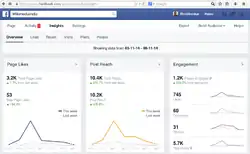 Facebook has their own analytic platform which allows the user to see how other users are interacting with their posts, with the use of multiple metrics.[2] This is not something the average user uses, but rather a tool that is used by pages or public figures for example. For example, Facebook pages that represent a business often look at the activity their posts have generated. There are three types of reach that can be looked at on the Facebook analytic platform.