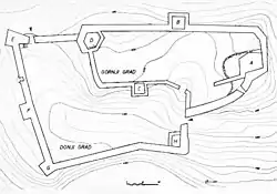 In the beginning, Sokograd consisted only of the so-called fortified tower (A) with a small courtyard. The city was later expanded to today's Upper Town, to which the Lower Town was later added, after which the ramparts and towers were strengthened and adapted to the use of firearms. One of the last stages in the development of the fort was the construction of a tower on the other side of the Sokocnica canyon , which protected Sokograd from artillery attacks in the west. On the ramparts of the fort can be seen three layers of construction and development of the city, which characterize the state in which the fortress was located.