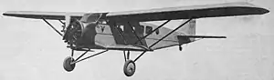 The MS-1 flew for the first time registered as X258V on 21 January 1930 with Doug Kelly at the controls.[1] Kelly described it as "one of the finest closed planes I have ever flown",[1] and Charles Lindbergh also praised the MS-1 when he flew it a few days later.[1] Despite this, the airlines did not order the type, although Northwest Airways and ten other airlines considered, and rejected buying examples due to the effect that the onset of the Great Depression was having on their traffic volumes.[3][1] A 6,000 mi (9,700 km) record flight from Los Angeles, California to Tokyo was planned, but never happened.[3] The high point was a 7,000 mi (11,000 km) transcontinental flight over 25 states that the president of Solar took with his entire family, including his wife and three children, aged 9, 7 and 3, which attracted considerable interest from the media who dubbed it the "flying nursery".[4] A purchasing agent for a major airline then promised a substantial order, but dropped dead of a heart attack the day the order was to be signed, and his replacement called off the deal.[4] Solar made the prototype available for charter flights for a while, but in 1931 sold it to an operator in Mexico who used it to transport coffee beans.[1] On the Mexican register as XB-AFK, the MS-1 was destroyed in a crash in 1936.[2] Solar would never build another aircraft, turning to saucepans to survive the depression, and later stainless steel exhaust shrouds.[4]