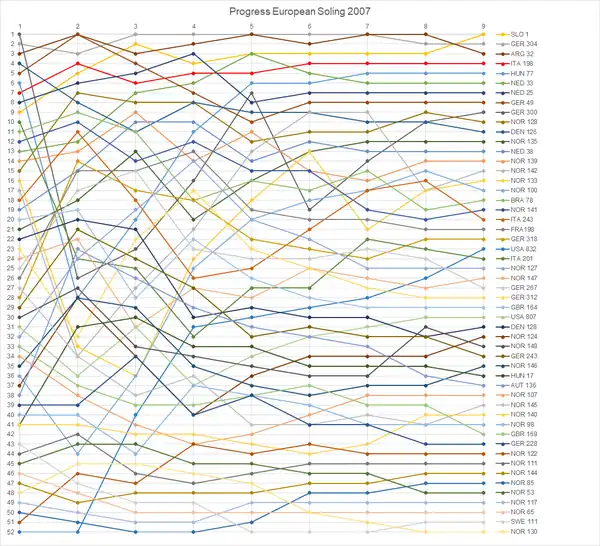 - ↑ "Soling European Championship" (ASCII). site-isaf.soticcloud.net. World Sailing. 31 July – 8 August 2009 [2009]. Retrieved 13 February 2022.