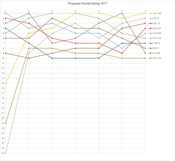 15. "1977 Soling World Championship" (ASCII). site-isaf.soticcloud.net. World Sailing. 1 July 1977 [1977]. Retrieved 29 January 2020.