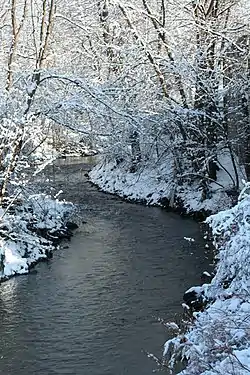 Solomon Creek is a tributary of the Susquehanna River in Luzerne County, Pennsylvania, in the United States. It is approximately 8.8 miles (14.2 km) long and flows through Fairview Township, Hanover Township, and Wilkes-Barre.[1][2] The creek is affected by acid mine drainage and has significant loads of iron, aluminum, and manganese. The creek's named tributaries are Spring Run, Sugar Notch Run, and Pine Creek. The Solomon Creek watershed is located in the Anthracite Valley section of the ridge-and-valley geographical province. Major rock formations in the watershed include the Mauch Chunk Formation, the Spechty Kopf Formation, and the Catskill Formation.