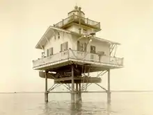 Little is known about this minor light, other than that it was constructed in 1867 to at the cost of $10,000 (equivalent to $209,000 in 2022).[1] Unlike many other screw-pile lighthouses it was apparently never threatened by ice, and thus passed a quiet life until it was dismantled in 1932, replaced by a skeleton tower. The ferry to Tangier Island passes its remains.