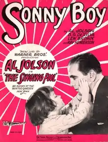 "Sonny Boy" is a song written by Ray Henderson, Buddy De Sylva, and Lew Brown. It was featured in the 1928 part-talkie The Singing Fool. Sung by Al Jolson, the 1928 recording was a hit and stayed at #1 for 12 weeks in the charts and was a million seller.[1]
